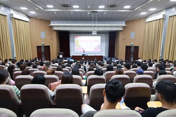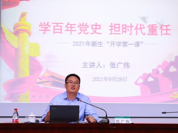9月28日下午,海都学院党委副书记、副院长张广伟以《学百年党史 担时代重任》为题,从爱国主义教育、价值观塑造、道德认知引导、职业生涯规划、大学学业指导以及安全警示教育等方面为食品系、人文艺术系的2021级新生上“开学第一课”。
