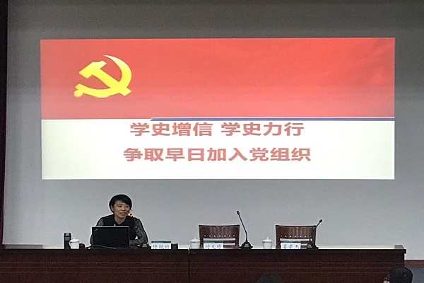 开班仪式后,由思想政治理论教学部副主任修艳竹做了题为《学史增信 学史力行 争取早日加入党组织》的首场党课讲座。讲座从开天辟地、改天换地、翻天覆地、惊天动地四个历史时期回顾百年党史历程,从什么是信仰,为什么要有信仰,如何才能坚守信仰三个问题阐明了信仰是共产党人精神上的“钙”,怎样做到心中有信仰,脚下有力量。讲座中,修老师思路清晰,妙语连珠,深入浅出,鼓励同学们要认真学习党史,进一步坚定共产主义信仰,争取早日成为一名合格的共产党员。学员们认真听讲,深受教育和启发,用雷鸣般的掌声表达了对修老师的感谢。