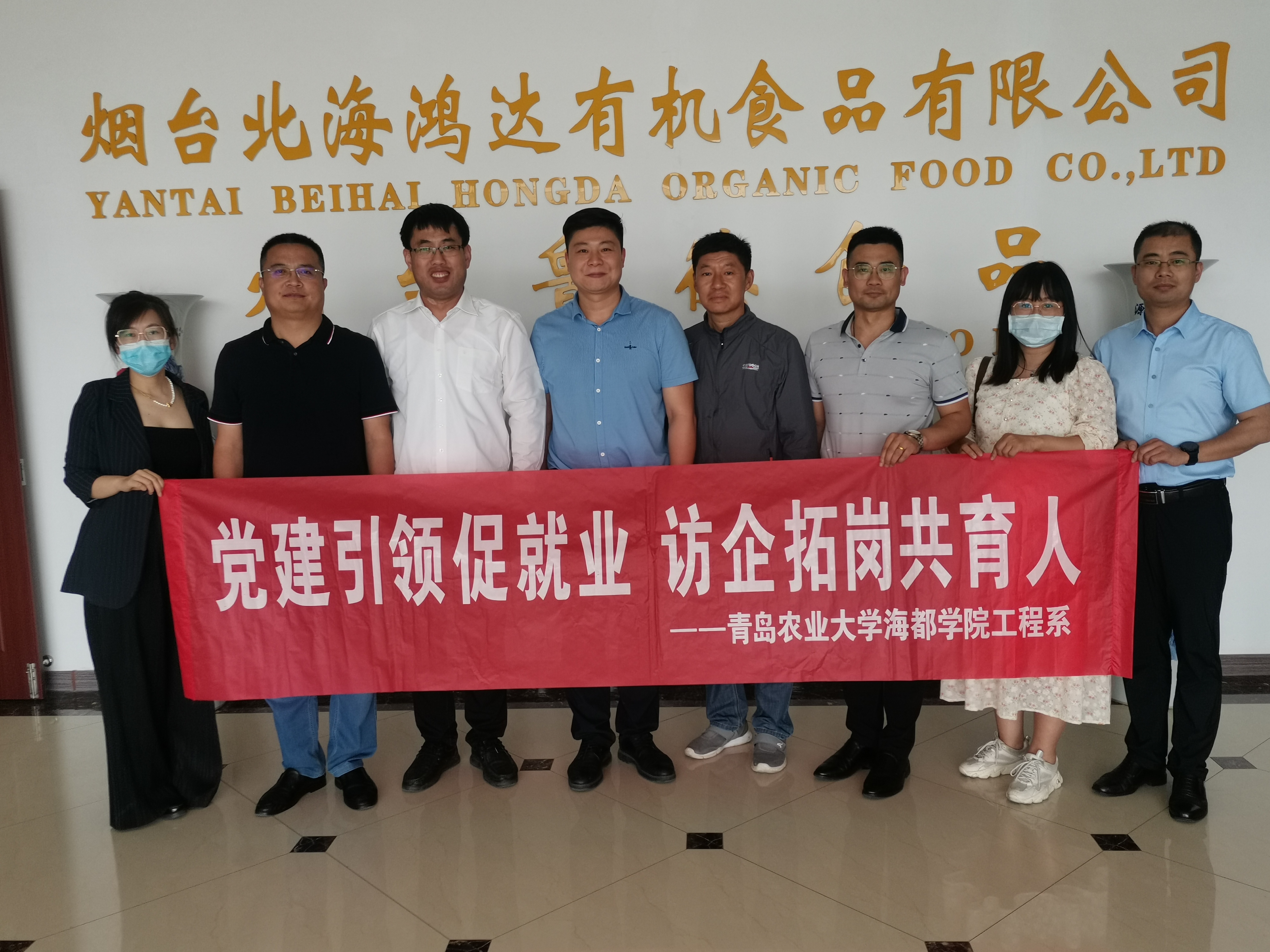 为贯彻落实“访企拓岗促就业”专项行动,进一步深化企业和学校合作,推进产教研融合的广度和深度,提升人才培养质量和学生就业质量,5月30日,学校学生工作处副处长、团委副书记孙家财,工程系主任姜学东教授,党总支副书记赵洪校,副主任、机械教研室主任贾永敏,学工办主任、团总支书记周晓颖,学生第二党支部书记、正科级辅导员孙鹏等一行赴烟台北海鸿达有机食品有限公司开展访企拓岗。