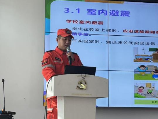 活动伊始,鸿达社区主任宋锐向大家介绍了本次活动目的与意义。他强调,防灾减灾是守护生命财产安全的重要防线,希望通过此次活动,让大家深刻认识灾害风险,掌握应急避险技能,共同构建安全和谐社区。城厢街道和兴社区党总支书记崔鹏飞同志为大家分享了汶川大地震亲历场景及救援逃生实例,真实的故事让居民深刻感受到自然灾害的破坏力,也体会到应急救援与自救互救的重要性。青年应急救援队队长姜松杰带来减灾防灾知识专题讲解。他通过图文并茂的演示和生动易懂的案例,让大家学习到如何在灾害发生前做好物资储备、灾害来临时快速找到安全庇护所、灾后如何开展自救互救等实用知识。