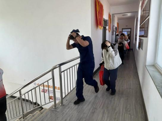在理论知识讲解结束后,社区还组织开展了逃生演练。随着警报声响起,大家按照救援队指导的逃生路线,弯腰低姿、屏住呼吸,迅速有序地从室内撤离至社区空旷安全区域。演练过程紧张有序,有效检验了居民对逃生知识的掌握程度,提升了应急反应能力。通过演练,不仅增强了经管师生的安全意识,还提高了防御和应对紧急突发事件的能力,真正把安全工作落到实处,为今后的应急处理演练积累了宝贵的经验。
