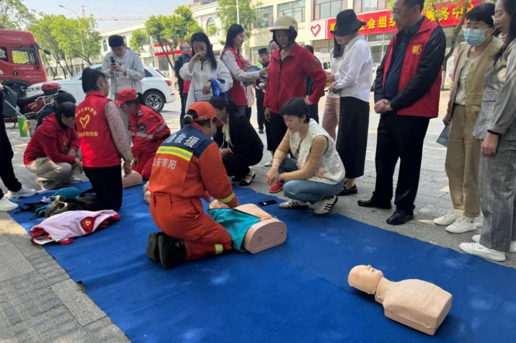 活动最后,大家齐聚社区对面小公园广场,青年应急救援队为大家开展了心肺复苏、灭火器使用等实操培训。队员们现场演示了心肺复苏操作流程,详细讲解按压频率、深度及人工呼吸要点。之后,在队员们的指导下,大家进行了实际操作练习,有效地掌握了这些重要的急救技能。同时,他们还向大家深入讲解了火灾的预防与应对、消防器材的正确使用、火灾现场的逃生技巧等知识,使同学们对消防安全有了更全面、更深入的了解。