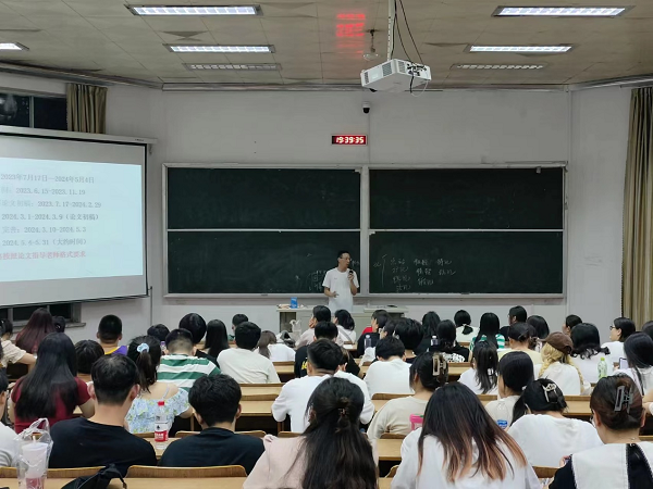 接着,老师们向2024届毕业生详细说明了实习的目的和意义,并以PPT的形式展示了实习的具体要求和需要注意的问题,如实习任务、实习时间安排以及实习后所需要提交的材料等多个细节一一进行详细的讲解,重点围绕校友邦操作、填写要求及装订顺序予以解释和说明。接着,对2024届毕业生离校、就业推荐表、就业材料填写、毕业信息录入工作做了具体安排。