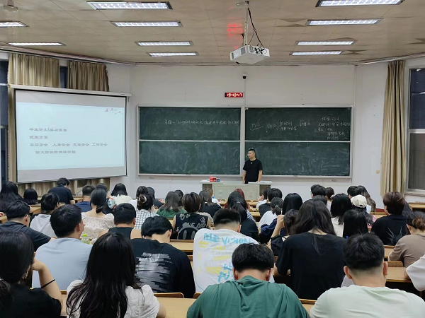 7月5日,生物科技系在6号楼318、320和322教室召开2024届毕业生实习动员大会。生科系主任孙海峰、党总支副书记管晓庆、教学办公室副主任王钊、团总支书记李琦、教学秘书王晨炎、辅导员及全体2024届毕业生参加会议。