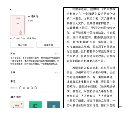 活动整合商务印书馆、人民邮电出版社等出版社经典图书资源。每本图书均支持全本阅读,书籍内容自适应移动设备终端,支持阅读设置字体大小和背景颜色。部分图书还提供有书籍解读视频,由出版社知名编辑进行领读,为读者提供专业阅读指导。同时活动页面提供书评交流区,共读同一本书的读者可在线进行互动交流。支持读者查看积分排行、在线进行积分兑换礼品。