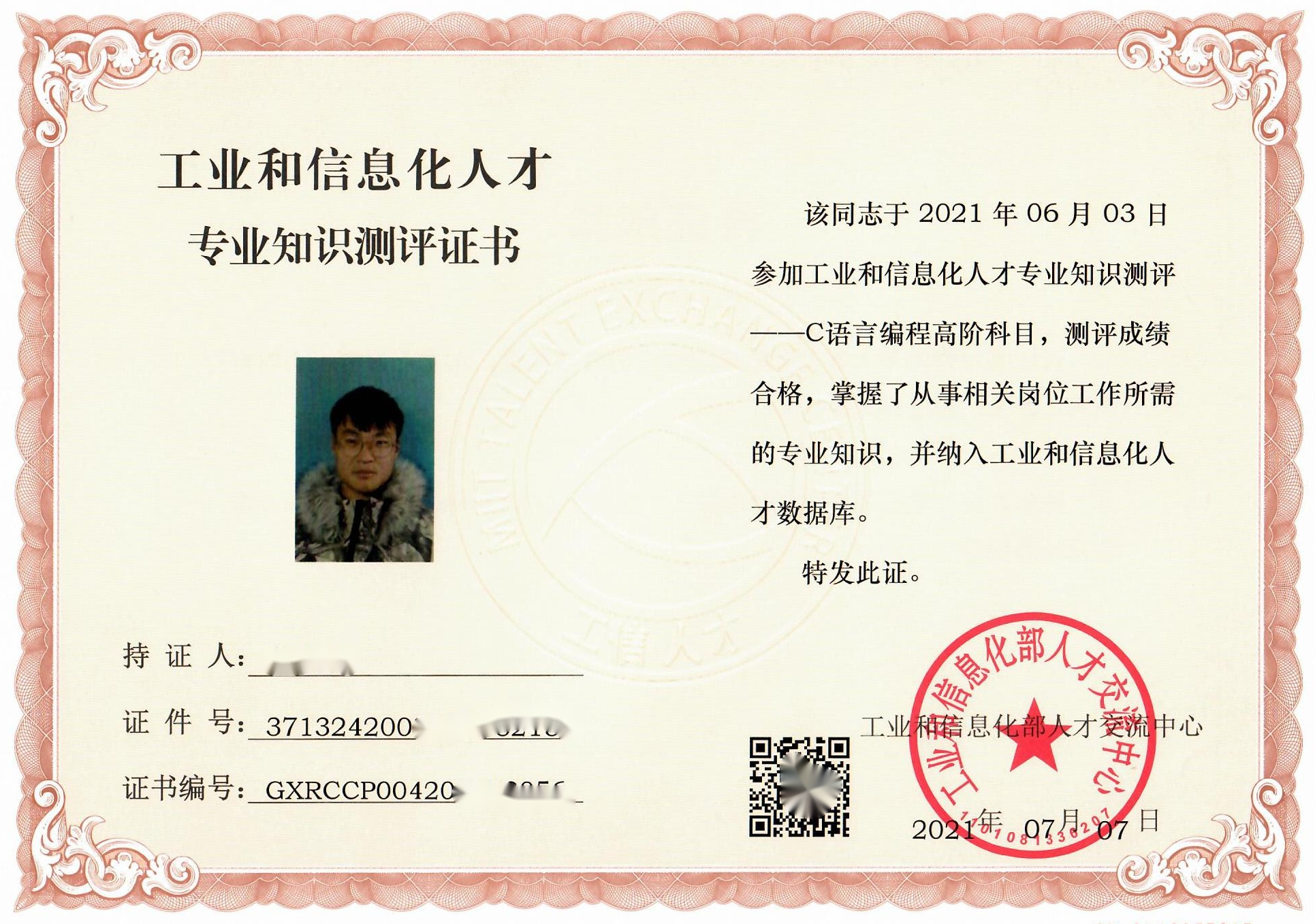 115名海院学子获得职业技能证书。本次证书主要包括信息化办公工程师、Java面向对象编程开发、C语言编程高阶、网络工程、CAD制图、平面设计工程师、食品检验员、花卉园艺师、监理员、企业人力资源管理师等证书,共计115人次报名参加证书培训项目,所有学生通过考试。现将部分证书展示如下: