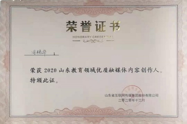 日前,我校荣获2020山东最佳社会声誉高校(精进奖),宣传部冯艳华、张辉荣获2020山东教育领域优质融媒体内容创作人。