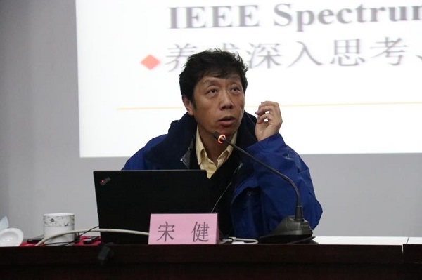 宋健教授以《永远相信你的努力会让世界有所不同》为题,与师生交流互动,讲述学科前沿、专业发展、清华故事。在清华大学的教育教学改革中,价值塑造、能力培养、知识传授的“三位一体”育人理念是关键词之一。在报告会上,宋健教授与大家分享了自己研发团队的学术研究成果,概述了地面数字电视传输、网络融合、无线通信、电力线通信和可见光通信等领域研究过程及未来的发展方向。他结合自身工作和科研经历,鼓励师生们要明确目标,有效管理时间;要勤于思考,勇于创新;要端正态度,务实工作;要博学善思,修身笃行。