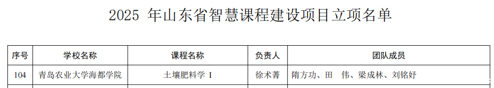 近日,山东省高等教育学会与山东省高等学校课程联盟联合公布了2025年山东省智慧课程建设项目立项名单,我校生物工程学院徐术菁老师负责的《土壤肥料学I》课程成功入选。此次立项是对我校在人工智能赋能教育领域建设成果的又一重要肯定,彰显了学校在智慧课程建设中的扎实积淀。