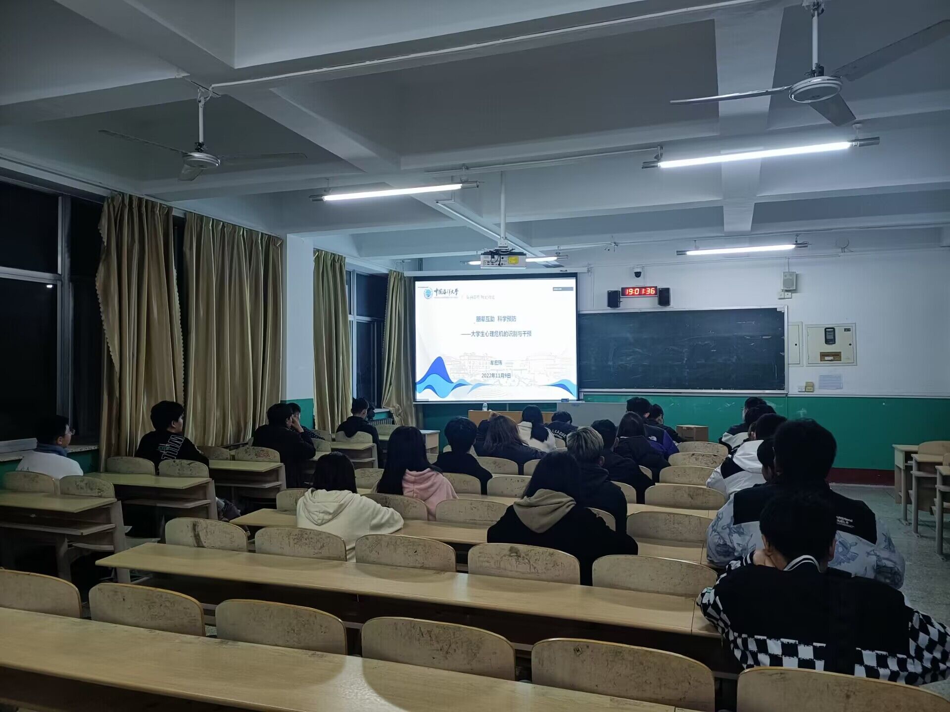 为营造良好的心理健康教育氛围,11月9日晚,工程系在六号教学楼308多媒体室开展青马培训班第二讲——通过腾讯会议集体观看“灌注心能量、添加心动力”心理适应主题讲座,讲座由中国海洋大学心理健康教育与咨询中心主任牟宏玮主讲。
