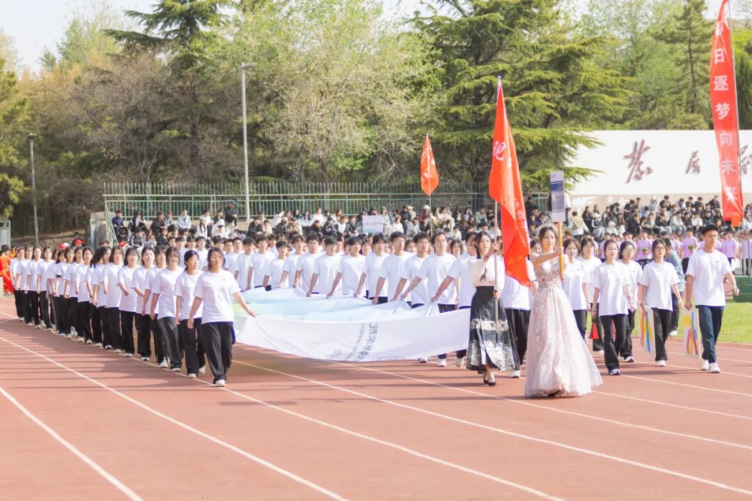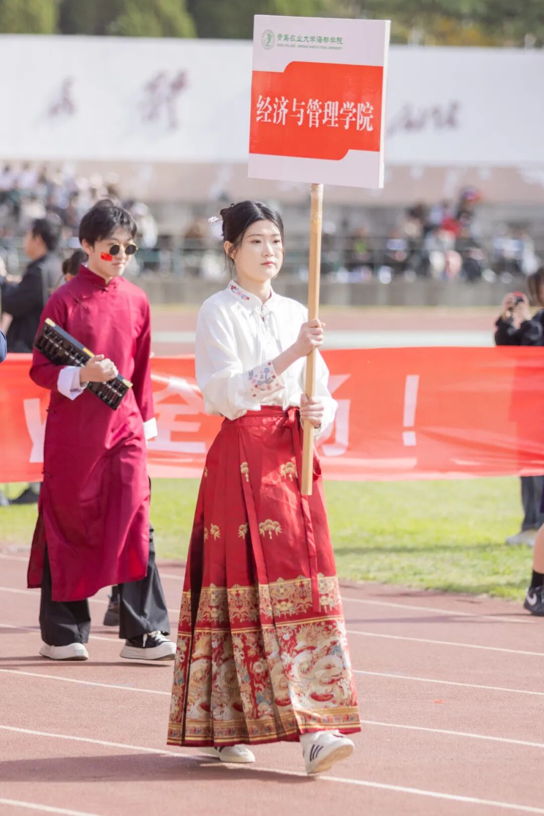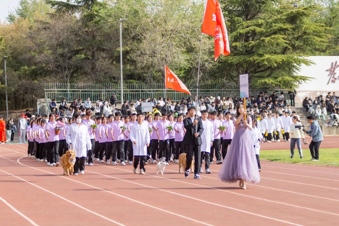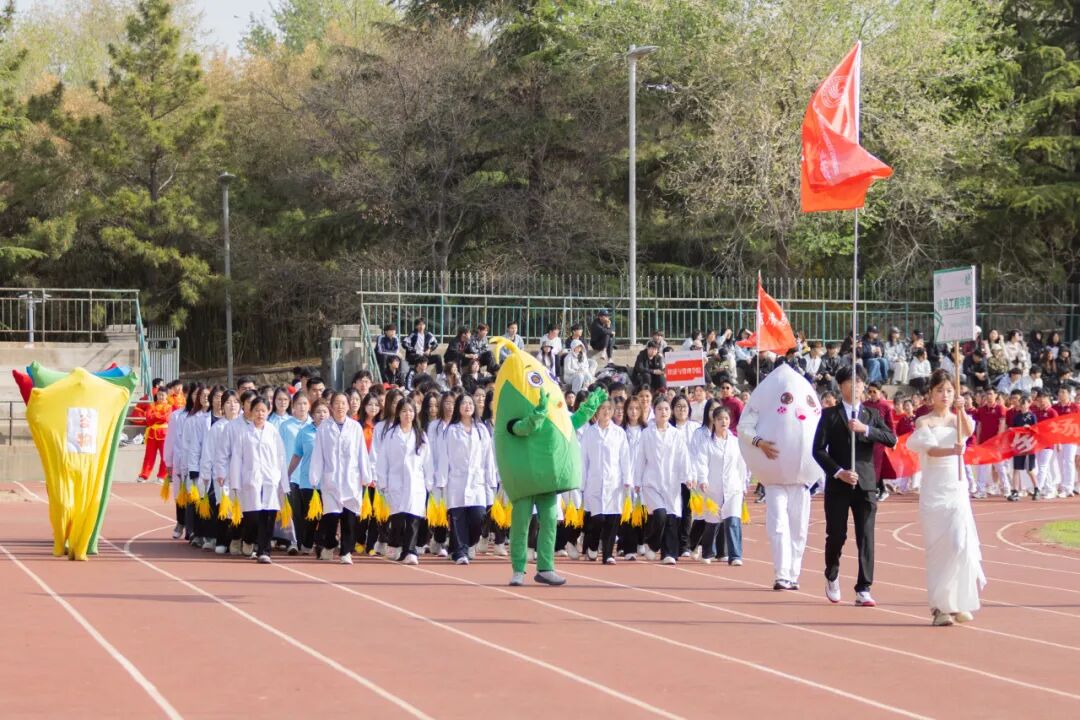开幕式上,伴随着激昂的运动员进行曲,各代表队依次入场。国旗护卫队步履铿锵,彩旗队迎风列阵,裁判员方队庄严行进,信息工程学院无人机编队翱翔碧空划出科技轨迹,现代设计学院手持亲手设计绘制的学校特色建筑巨型画卷徐徐铺展,生物工程学院与萌宠相伴展现生命科学魅力,食品工程学院托举膳食宝塔模型诠释食安之道,经济与管理学院手持算盘敲响数字时代的韵律,机电与建筑工程学院展示精密仪器铸就匠心精神。各方队创意迭出、亮点纷呈,以独特方式展现专业风采与体育精神,共同拉开本届运动会的华彩序幕。