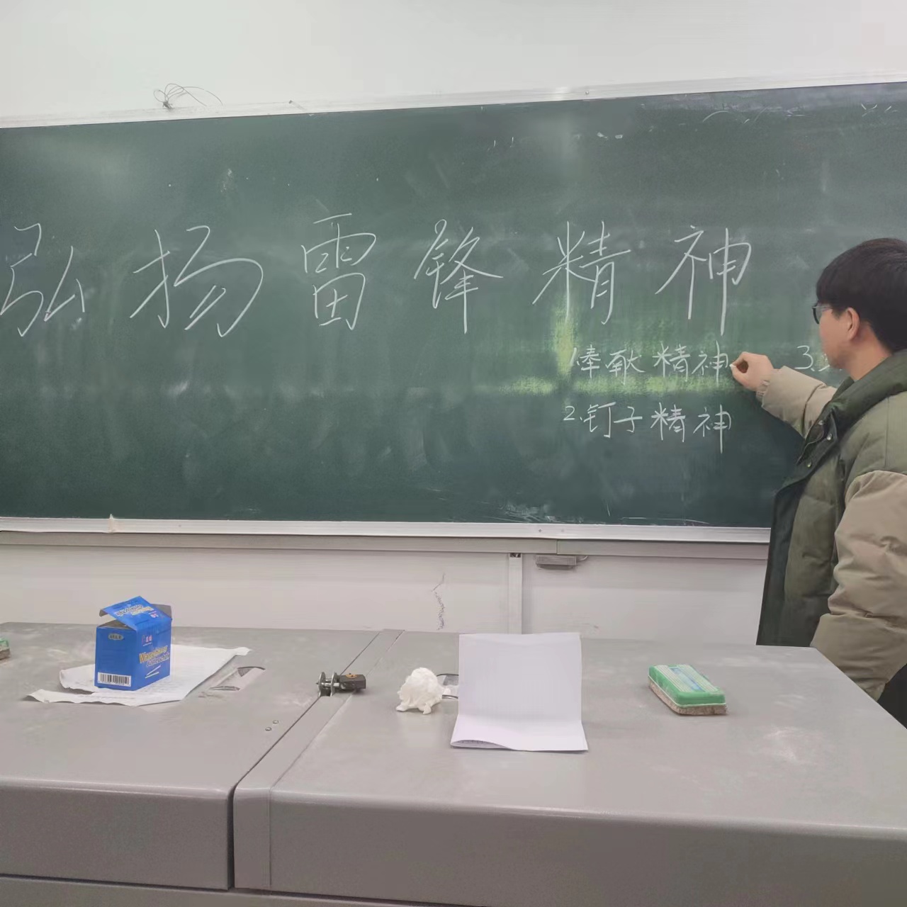 在辅导员的带领下,学生会在六号教学楼开展了“雷锋精神我知晓”学习宣讲活动,带头强化理想信念的力量;各级学生组织通过主题团课、宣讲事迹、观看视频、展板等方式,认真学习雷锋“螺丝钉”精神;同期开展了“雷锋精神我传承”主题征文比赛、“追锋行动”学雷锋志愿服务活动,以实际行动传承雷锋精神。