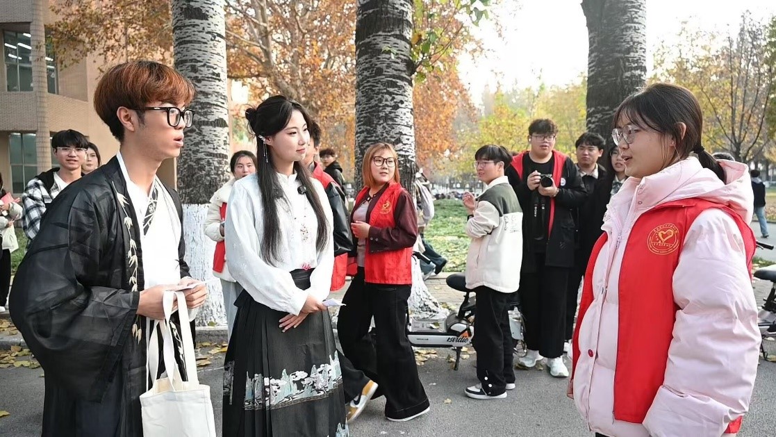 活动现场热闹非凡,校园的各个角落都成了对诗的舞台,志愿者们身着汉服,手持诗卡,每当有同学停下脚步,便会上前与其进行对诗互动。一时间,校园里充满了欢声笑语和朗朗诗声。摄影师则用镜头捕捉这些青春洋溢、诗意盎然的瞬间。